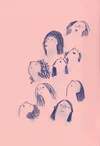 pencil illustration on a green background. Three girls walking through a brick change room at a pool. brick wall behind, pigeons in louvred windows. picturebook illustration. Jaclyn Bates