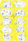 ink line drawing. naive sun on yellow background. ink on vellum. picturebook illlustration. editorial illustration. Jaclyn Bates. Brisbane